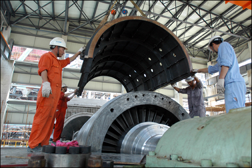 然而,煙氣輪機工作狀況十分惡劣:高溫、高壓、腐蝕以及固體顆粒沖擊,造成葉片腐蝕嚴重。煙氣輪機服役溫度為600~800℃,煙氣輪機中的煙氣是焦(渣)油(經常摻雜有瀝青)的燃燒產物,含有大量有害元素或介質,如:S,K,Ca,Mg,Na,V,Fe,SO2,SO3等,這些元素或介質通過反應會產生一系列低熔點化合物或共晶物沉積在葉片表面,具有很強的腐蝕性。此外,煙氣中帶有一定濃度的高速運動的催化劑硬質顆粒(如硅酸鋁等),對葉片表面造成沖蝕,葉片在無涂層保護的情況下,一般使用周期僅為2~6個月,整個葉片會全部腐蝕磨損掉。為此,必須解決煙氣輪機葉片的防腐問題。